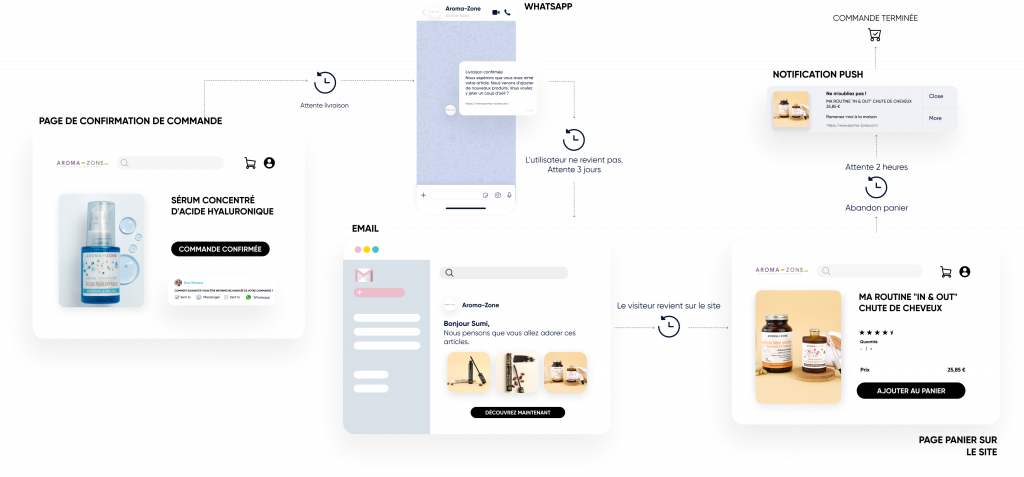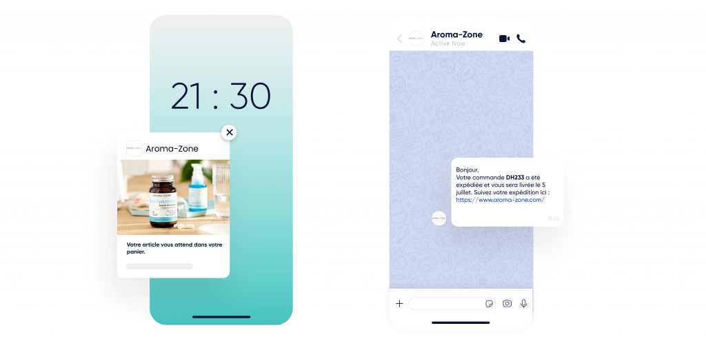 Utilisez les notifications Web Push, WhatsApp, les e-mails, et les SMS.