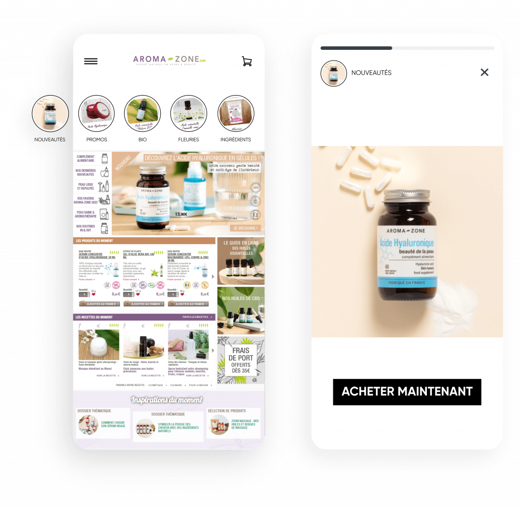 Augmentez la visibilité et améliorez la découverte produits grâce à la navigation, comme sur les réseaux sociaux. Avec InStory, vous pouvez personnaliser les histoires en fonction des intérêts ou du comportement des utilisateurs ; vos images se transforment en une expérience immersive que vos clients vont adorer.