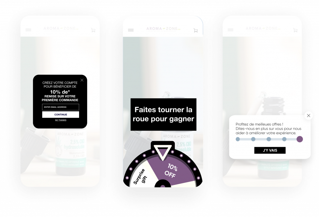 Créez une expérience engageante et gratifiante qui encourage les visiteurs à partager leurs informations avec vous. Accompagnez vos clients pas à pas, depuis leur tout premier achat jusqu’à leur fidélisation à long terme.