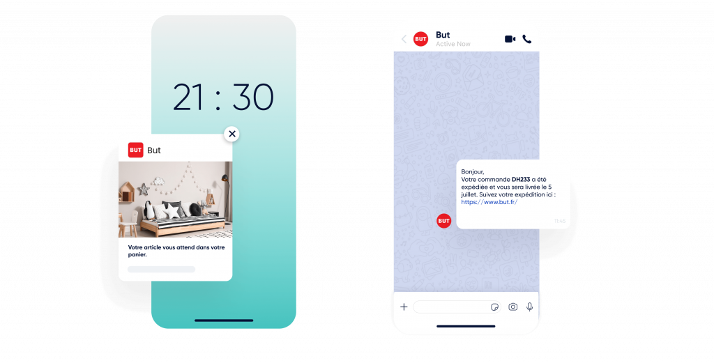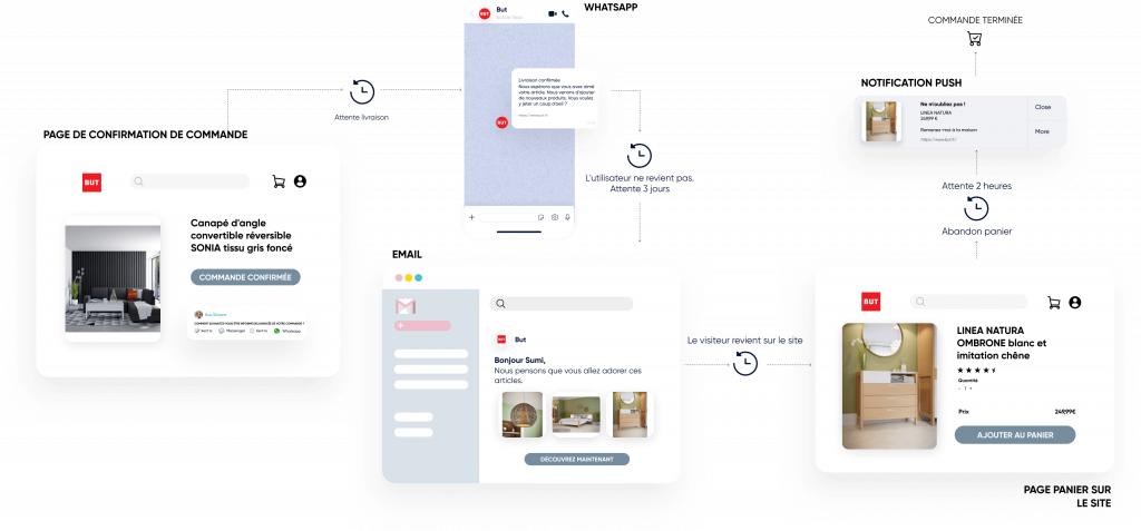 Utilisez les notifications Web Push, WhatsApp, les e-mails et les SMS.