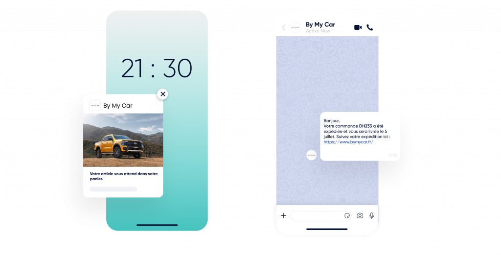 Utilisez les notifications Web Push, WhatsApp, les e-mails et les SMS.