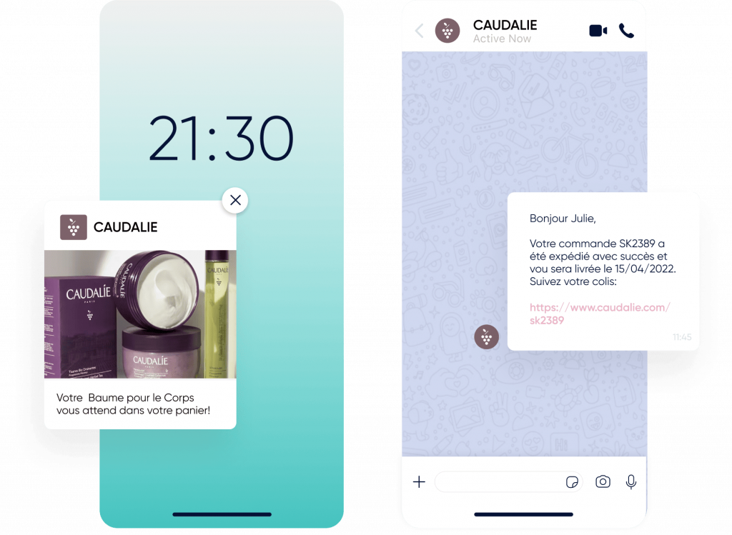 Utilisez les notifications Web Push, WhatsApp, les e-mails, et les SMS.