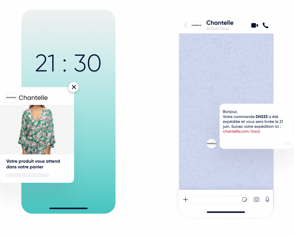Envoyez des alertes automatisées et des messages personnalisés allant des rappels de panier abandonné aux rappels de retour en stock pour accélérer les décisions d’achat et récupérer les ventes perdues.