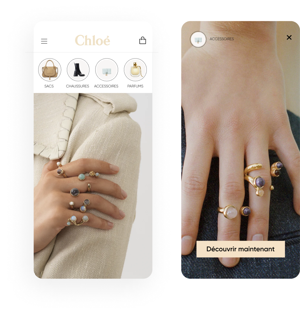 Augmentez la visibilité et améliorez la découverte de vos produits grâce à la navigation, comme sur les réseaux sociaux. Avec InStory, vous pouvez personnaliser les histoires en fonction des intérêts ou du comportement des utilisateurs ; vos images se transforment en une expérience immersive que vos clients vont adorer.