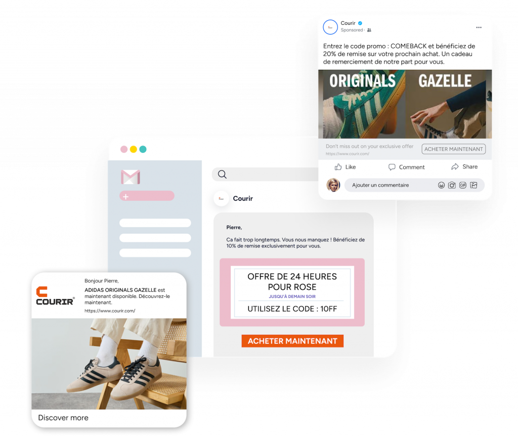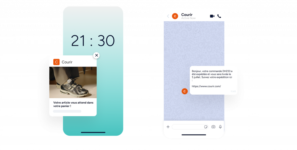 Utilisez les notifications Web Push, WhatsApp, les e-mails et les SMS.