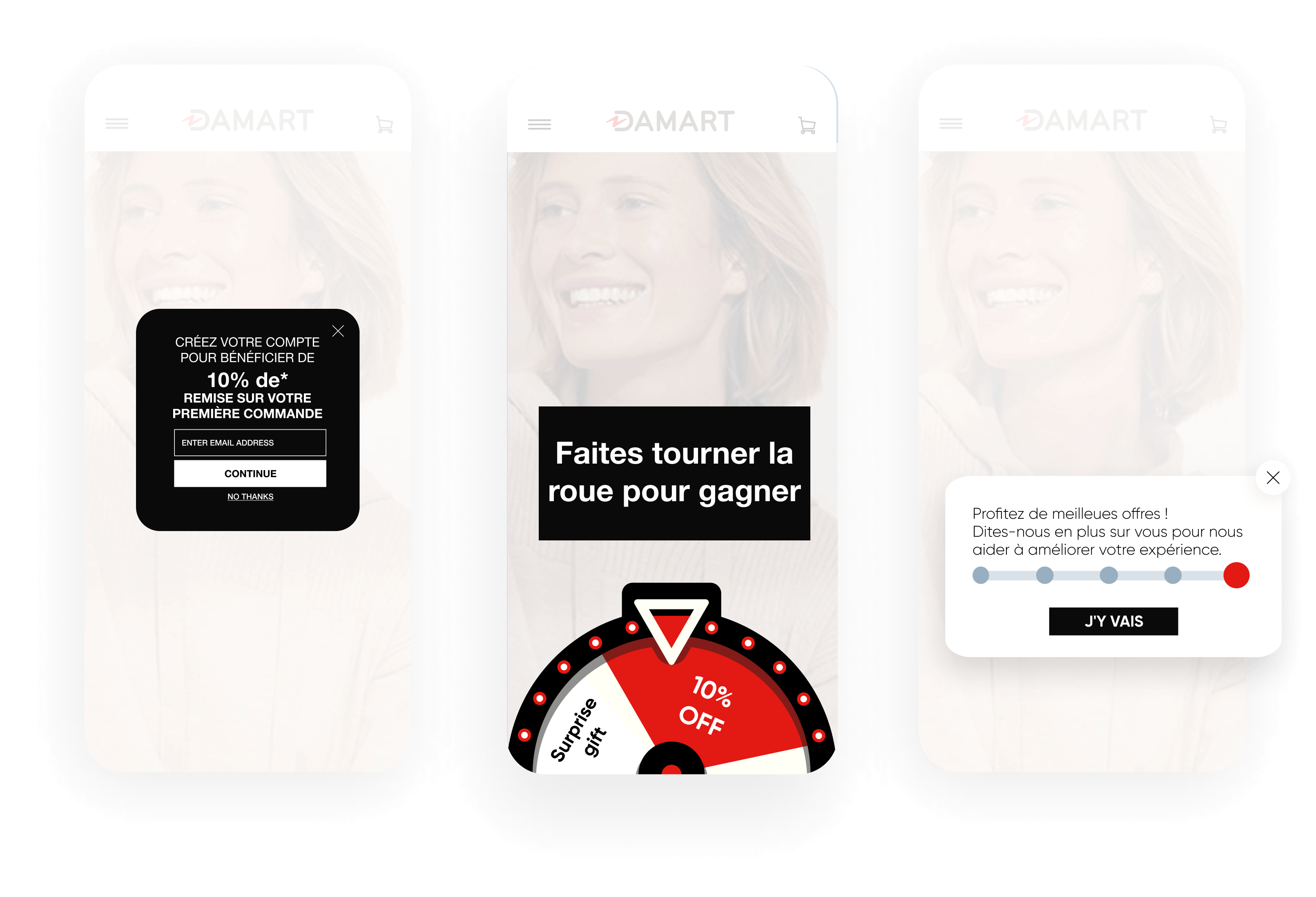 Convertissez les visiteurs inconnus en clients connus grâce à des modèles gamifiés. Créez une expérience engageante et gratifiante qui encourage les visiteurs à partager leurs informations avec vous. Accompagnez vos clients pas à pas, depuis leur tout premier achat jusqu’à leur fidélisation à long terme.