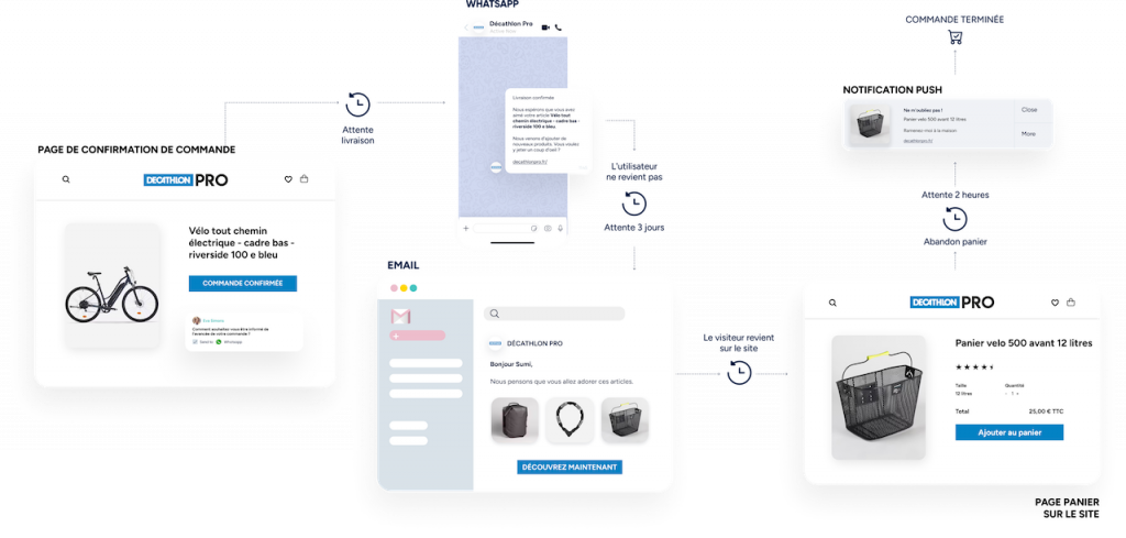 Utilisez les notifications Web Push, WhatsApp, les e-mails, et les SMS.