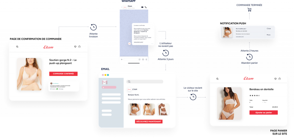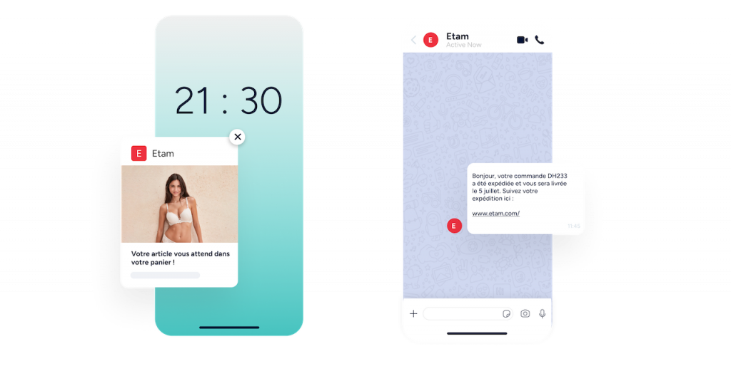 Utilisez les notifications Web Push, WhatsApp, les e-mails et les SMS.