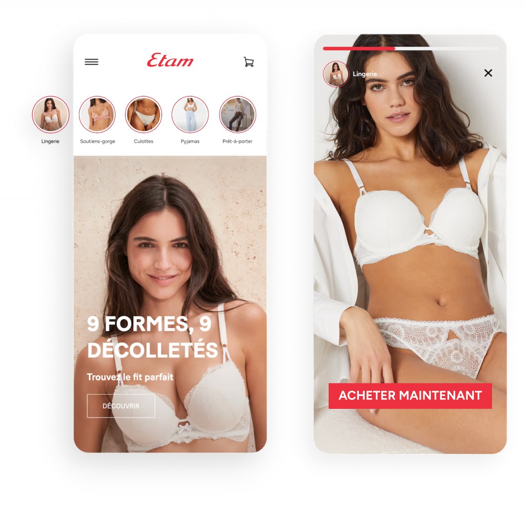 Augmentez la visibilité et améliorez la découverte de vos produits grâce à la navigation, comme sur les réseaux sociaux. Avec InStory, vous pouvez personnaliser les histoires en fonction des intérêts ou du comportement des utilisateurs ; vos images se transforment en une expérience immersive que vos clients vont adorer.