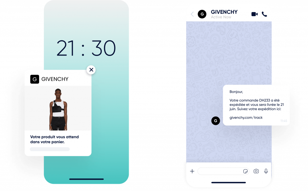 Utilisez les notifications Web Push, WhatsApp, les e-mails, et les SMS.