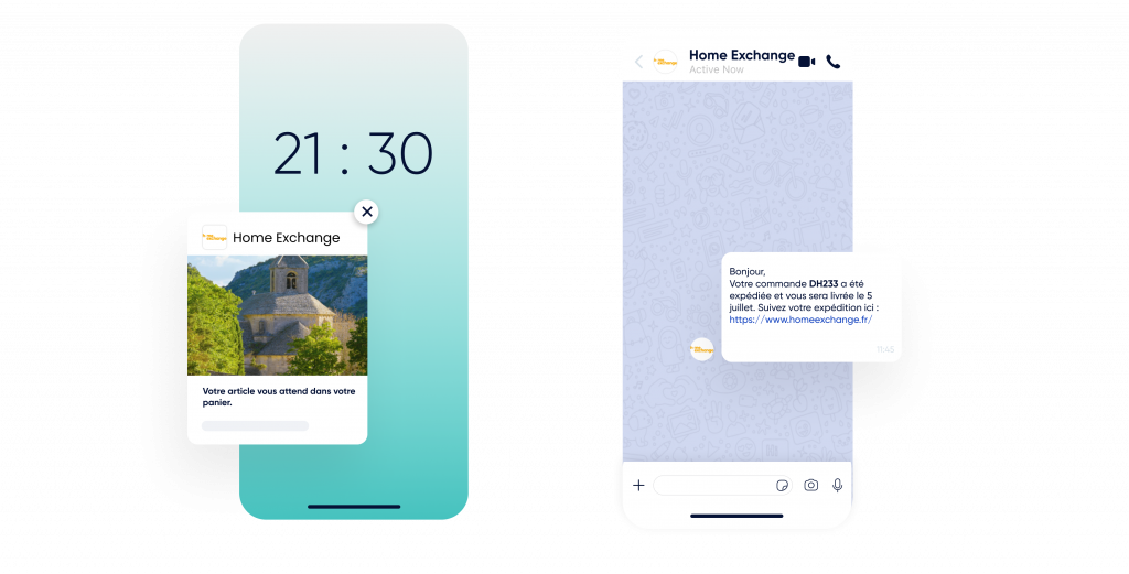 Utilisez les notifications Web Push, WhatsApp, les e-mails et les SMS.