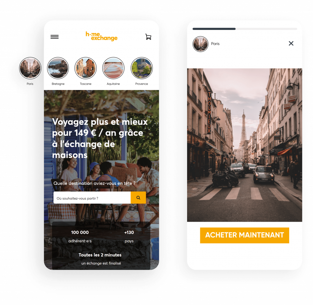 Augmentez la visibilité et améliorez la découverte de vos produits grâce à la navigation, comme sur les réseaux sociaux. Avec InStory, vous pouvez personnaliser les histoires en fonction des intérêts ou du comportement des utilisateurs ; vos images se transforment en une expérience immersive que vos clients vont adorer.