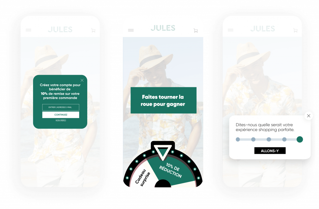 Convertissez les visiteurs inconnus en clients connus grâce à des modèles gamifiés. Créez une expérience engageante et gratifiante qui encourage les visiteurs à partager leurs informations avec vous. Accompagnez vos clients pas à pas, depuis leur tout premier achat jusqu’à leur fidélisation à long terme.