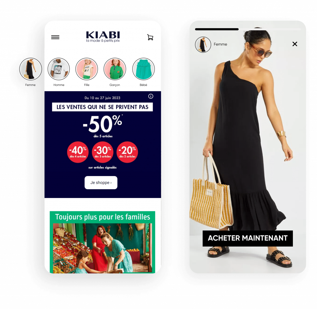 Augmentez la visibilité et améliorez la découverte de vos produits grâce à la navigation, comme sur les réseaux sociaux. Avec InStory, vous pouvez personnaliser les histoires en fonction des intérêts ou du comportement des utilisateurs ; vos images se transforment en une expérience immersive que vos clients vont adorer.
