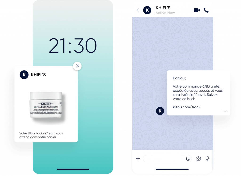 Utilisez les notifications Web Push, WhatsApp, les e-mails, et les SMS.