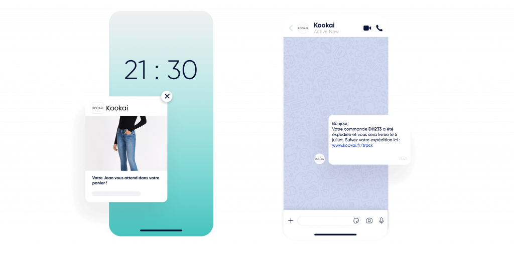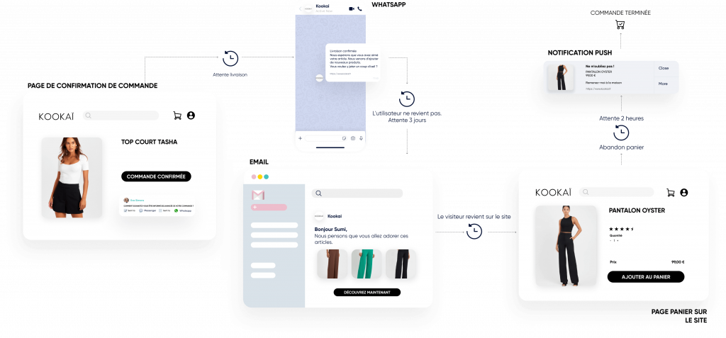 Utilisez les notifications Web Push, WhatsApp, les e-mails, et les SMS.