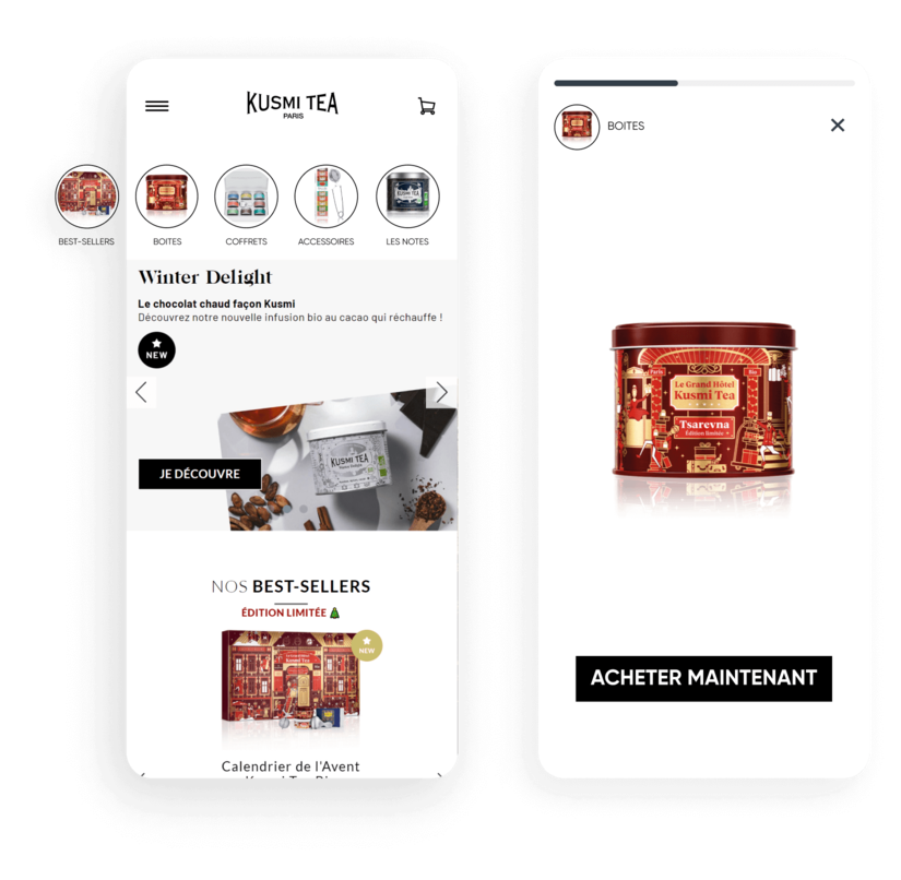 Augmentez la visibilité et améliorez la découverte de vos produits grâce à la navigation, comme sur les réseaux sociaux. Avec InStory, vous pouvez personnaliser les histoires en fonction des intérêts ou du comportement des utilisateurs ; vos images se transforment en une expérience immersive que vos clients vont adorer.