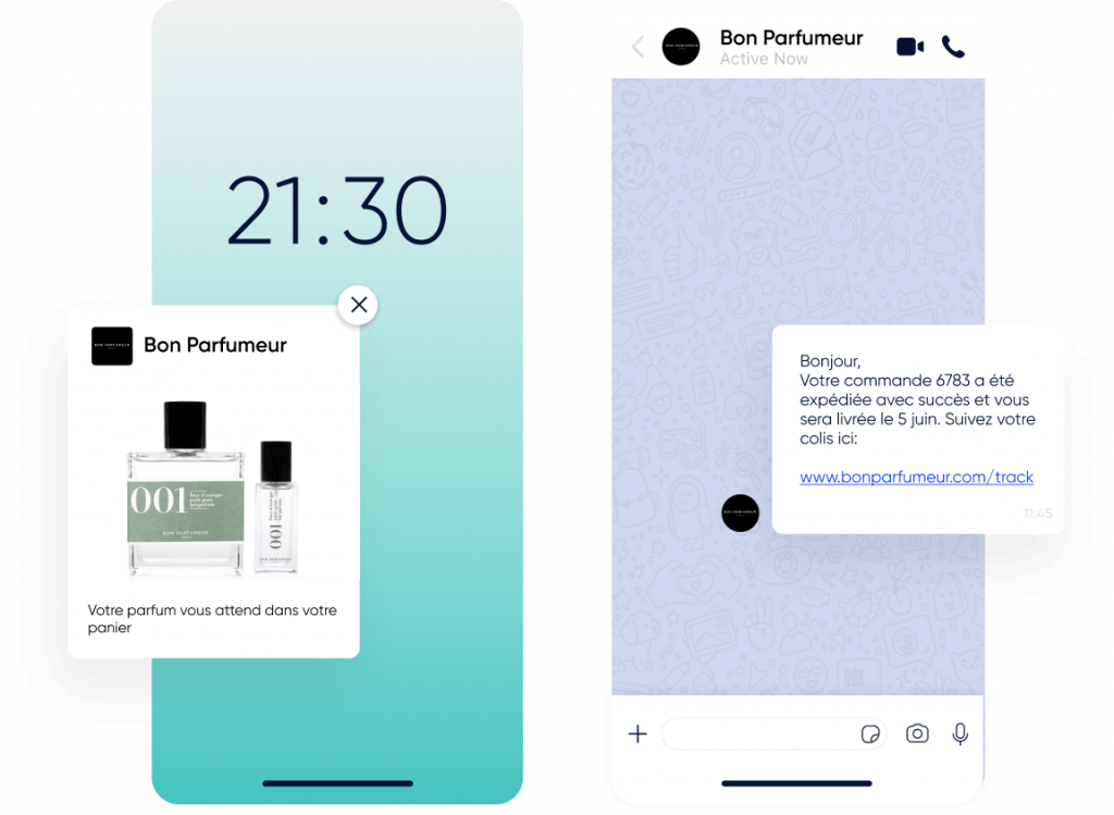Utilisez les notifications Web Push, WhatsApp, les e-mails et les SMS.