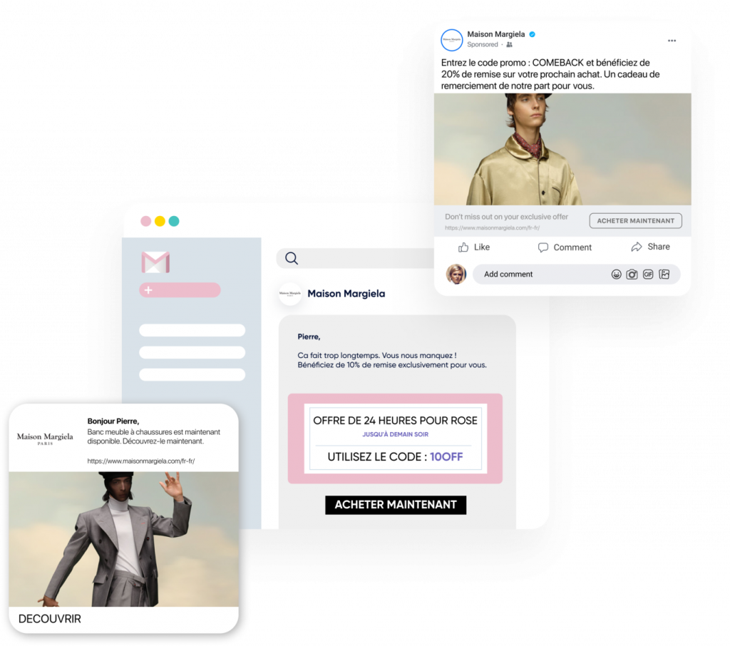 Utilisez les notifications Web Push, WhatsApp, les e-mails et les SMS.