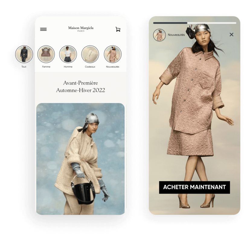 Augmentez la visibilité et améliorez la découverte de vos produits grâce à la navigation, comme sur les réseaux sociaux. Avec InStory, vous pouvez personnaliser les histoires en fonction des intérêts ou du comportement des utilisateurs ; vos images se transforment en une expérience immersive que vos clients vont adorer.