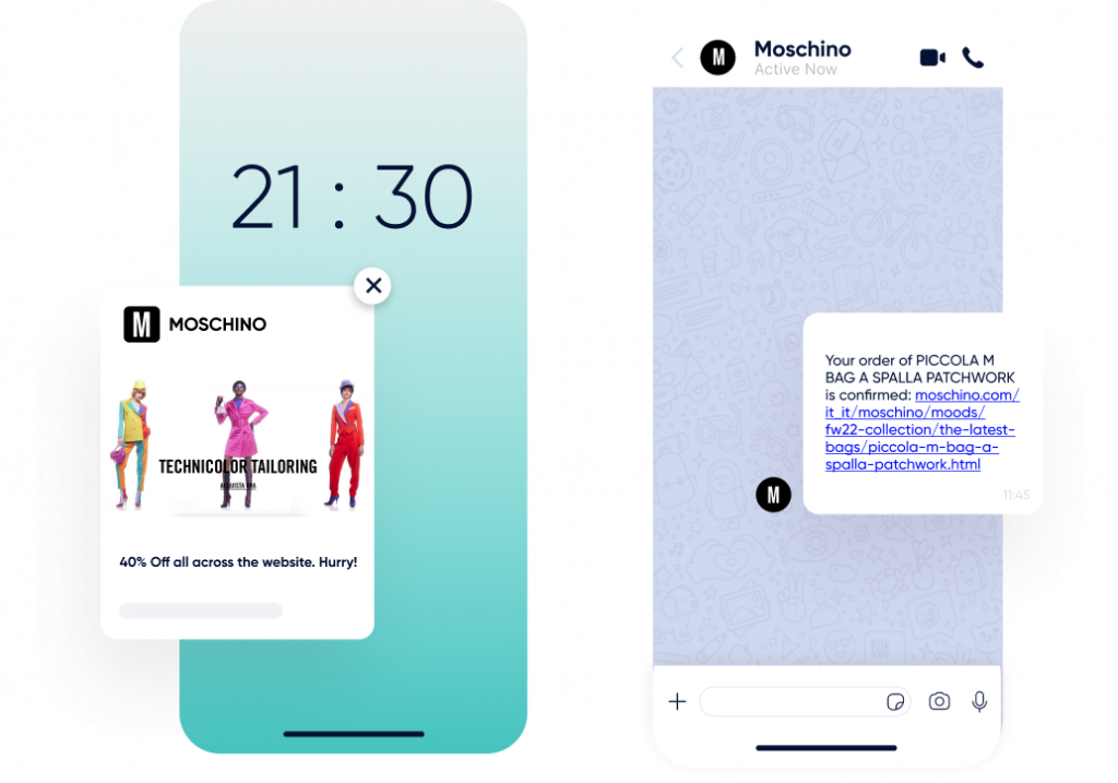 Usa le notifiche Web Push, WhatsApp, Email, e SMS.