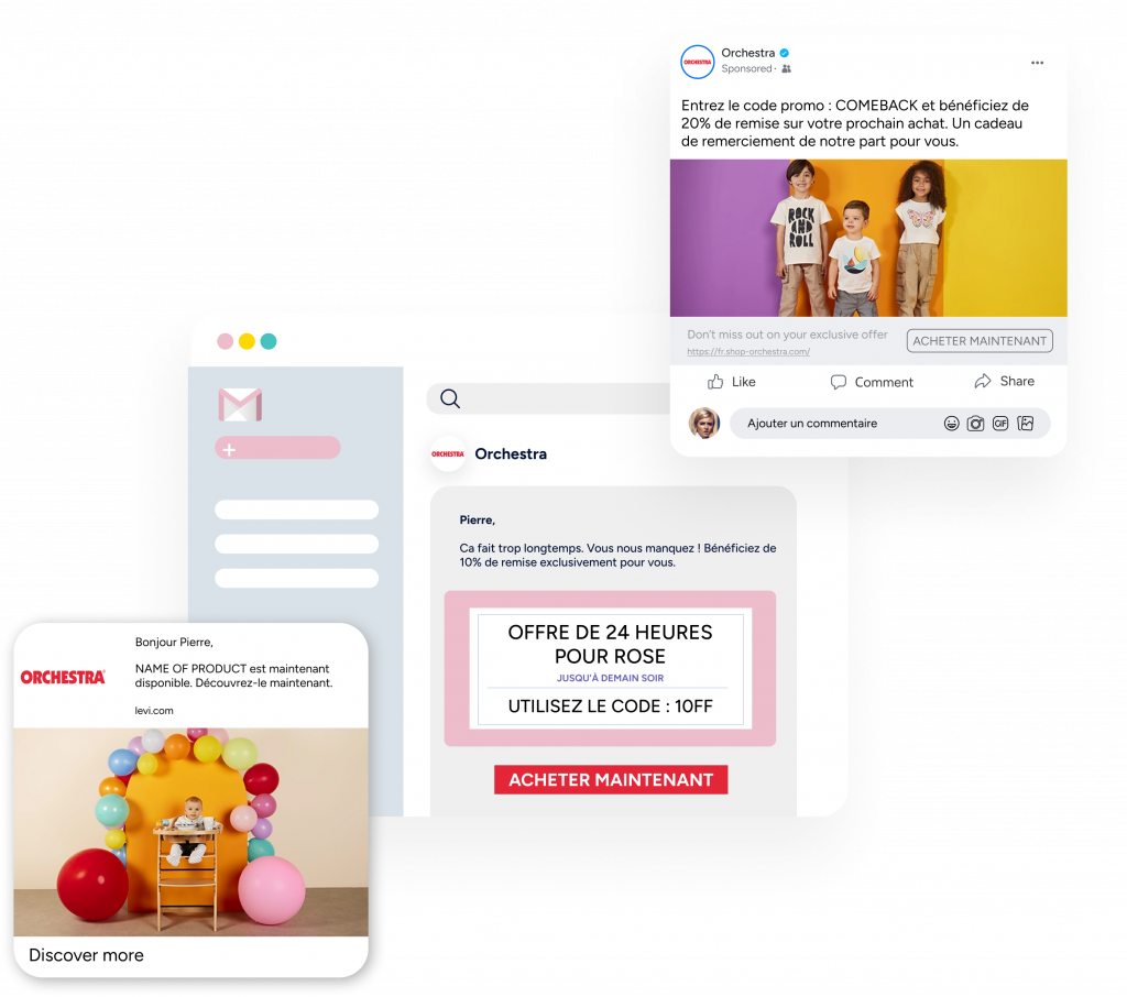 Créez des expériences multi-canal puissantes et personnalisées qui délivrent des messages pertinents, sur le canal préféré du client.