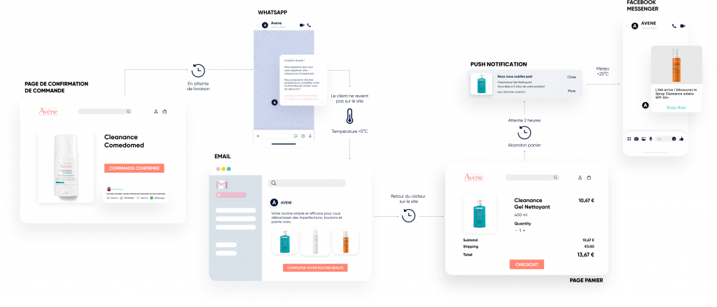 Utilisez les notifications Web Push, WhatsApp, les e-mails, et les SMS.