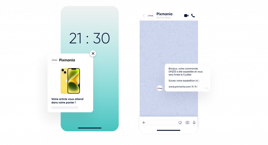 Utilisez les notifications Web Push, WhatsApp, les e-mails et les SMS.