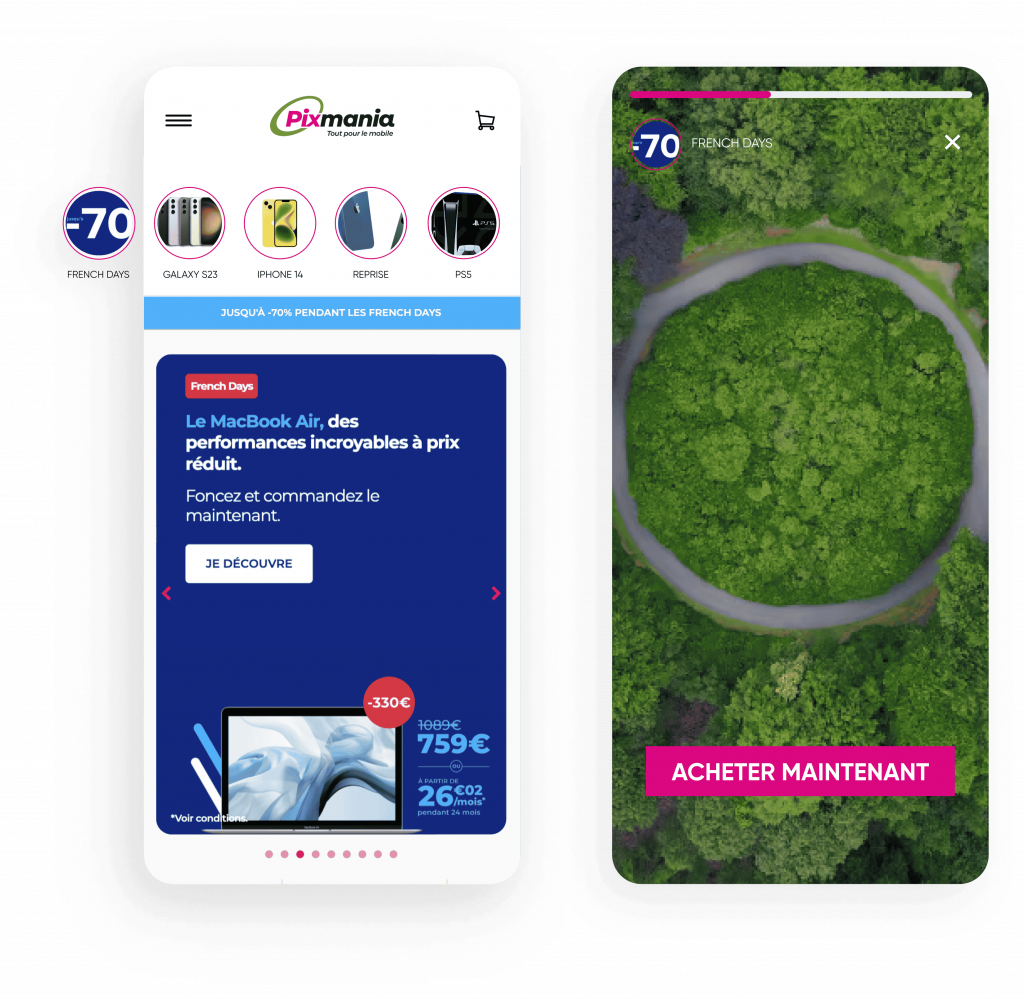 Augmentez la visibilité et améliorez la découverte de vos produits grâce à la navigation, comme sur les réseaux sociaux. Avec InStory, vous pouvez personnaliser les histoires en fonction des intérêts ou du comportement des utilisateurs ; vos images se transforment en une expérience immersive que vos clients vont adorer.