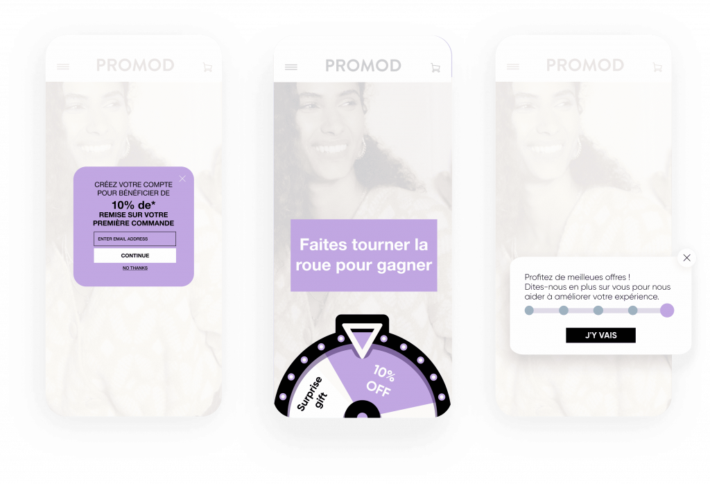 Convertissez les visiteurs inconnus en clients connus grâce à des modèles gamifiés. Créez une expérience engageante et gratifiante qui encourage les visiteurs à partager leurs informations avec vous. Accompagnez vos clients pas à pas, depuis leur tout premier achat jusqu’à leur fidélisation à long terme.