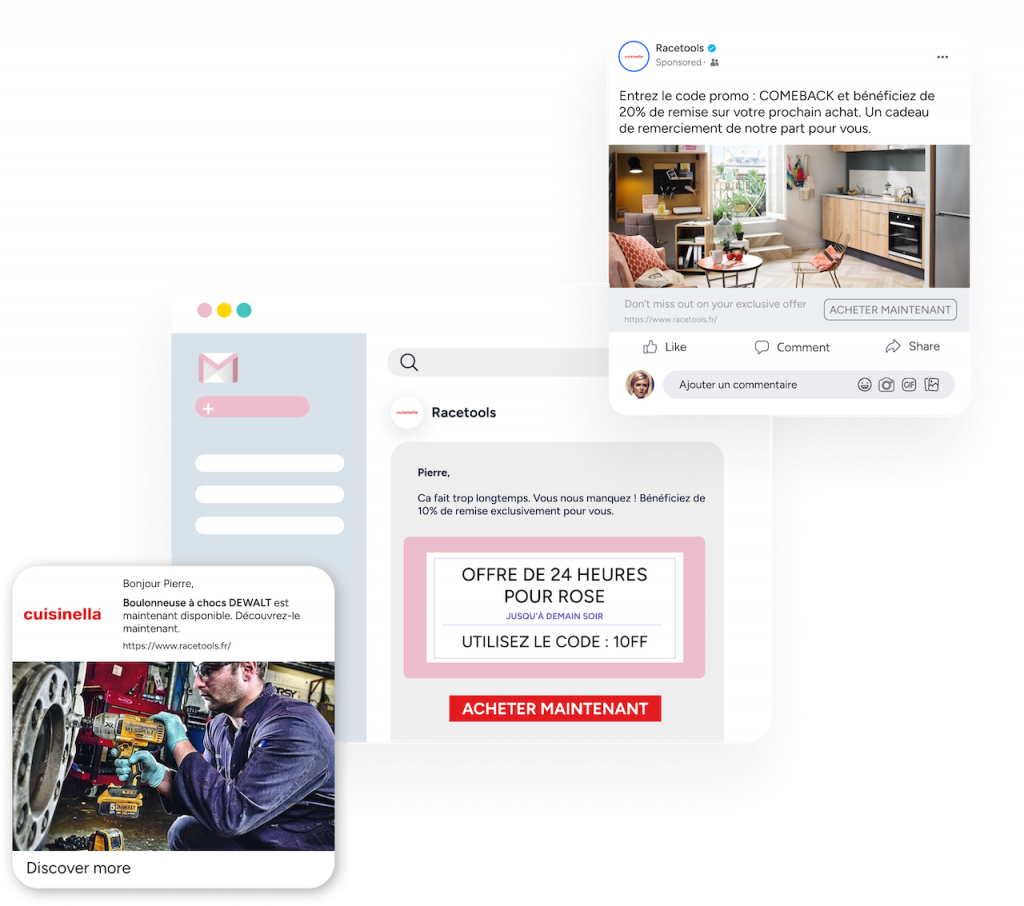 Les taux d’engagement par e-mail continuent de baisser. Si vous comptez uniquement sur ce canal pour attirer les utilisateurs et les ramener sur votre site Web, vous passez à côté d’une part importante de chiffre d’affaires qui se traduit par des ventes perdues que vous ne récupérerez pas.