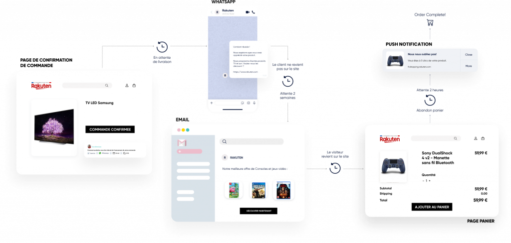Utilisez les notifications Web Push, WhatsApp, les e-mails, et les SMS.