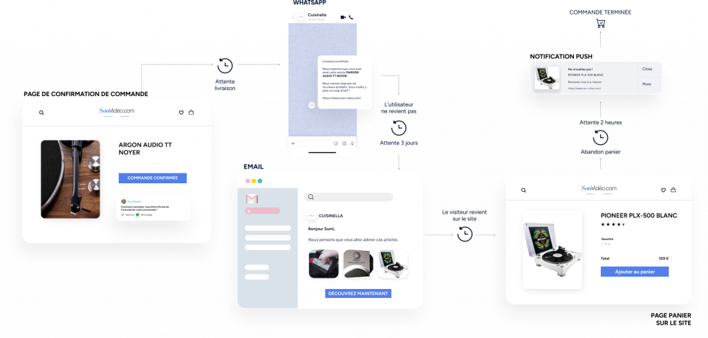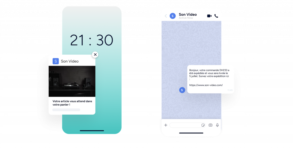 Utilisez les notifications Web Push, WhatsApp, les e-mails et les SMS.