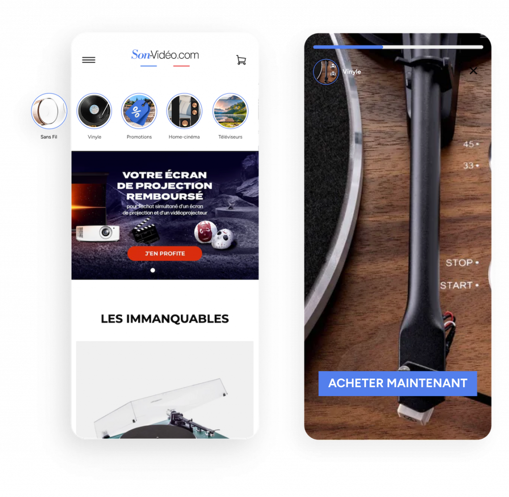 Augmentez la visibilité et améliorez la découverte de vos produits grâce à la navigation, comme sur les réseaux sociaux. Avec InStory, vous pouvez personnaliser les histoires en fonction des intérêts ou du comportement des utilisateurs ; vos images se transforment en une expérience immersive que vos clients vont adorer.