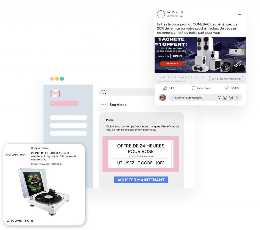 Créez des expériences multi-canal puissantes et personnalisées qui délivrent des messages pertinents, sur le canal préféré du client.