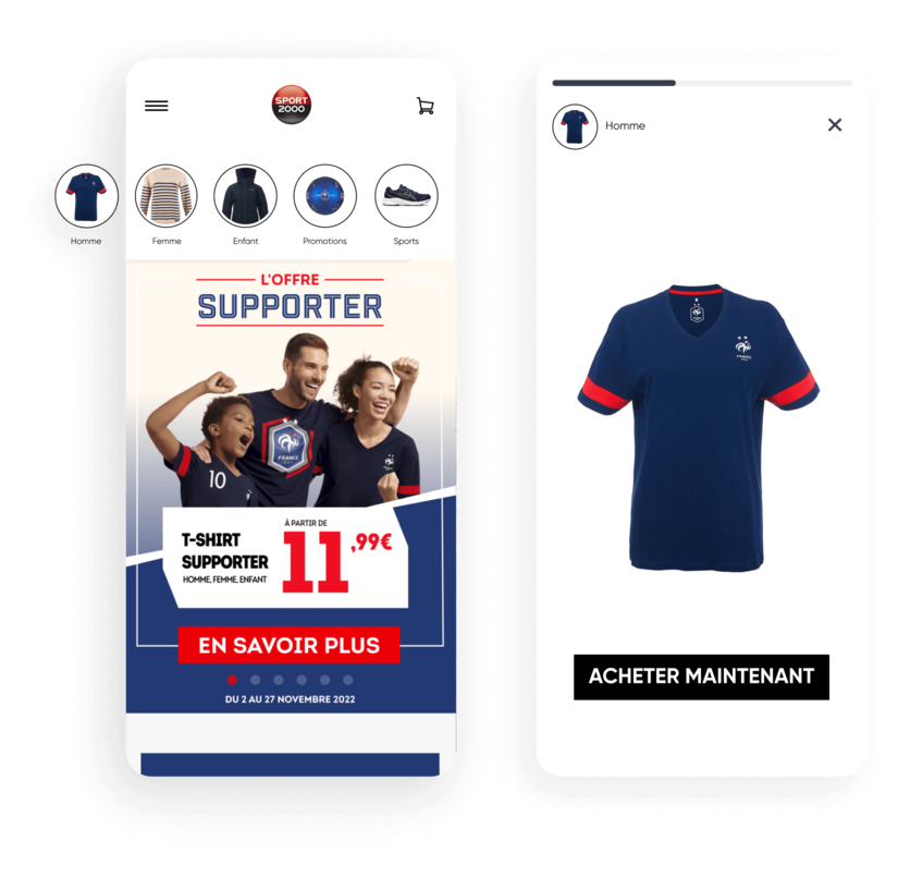 Augmentez la visibilité et améliorez la découverte de vos produits grâce à la navigation, comme sur les réseaux sociaux. Avec InStory, vous pouvez personnaliser les histoires en fonction des intérêts ou du comportement des utilisateurs ; vos images se transforment en une expérience immersive que vos clients vont adorer.