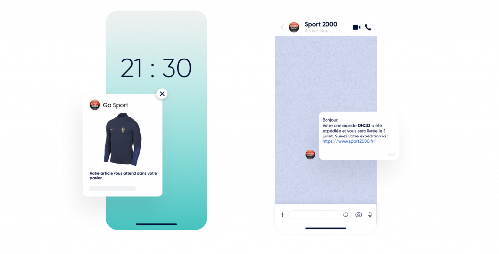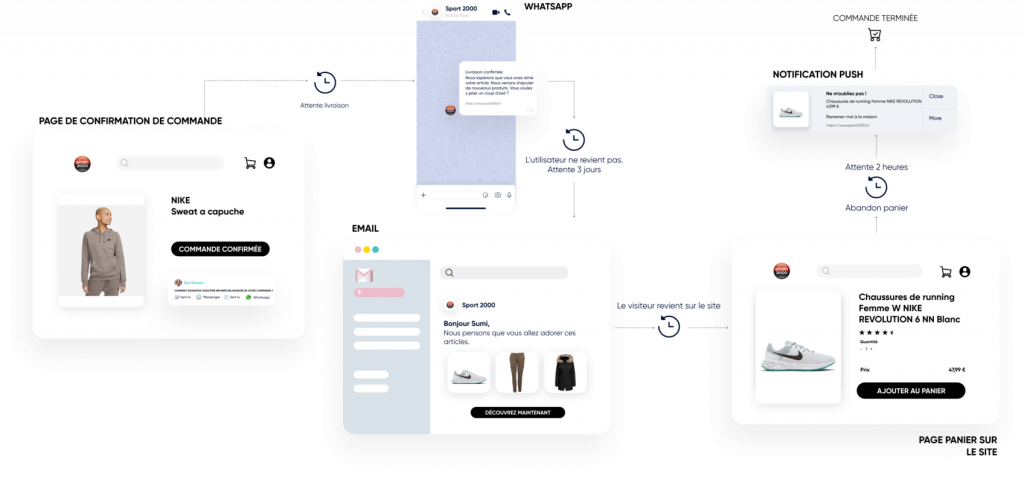 Utilisez les notifications Web Push, WhatsApp, les e-mails et les SMS.