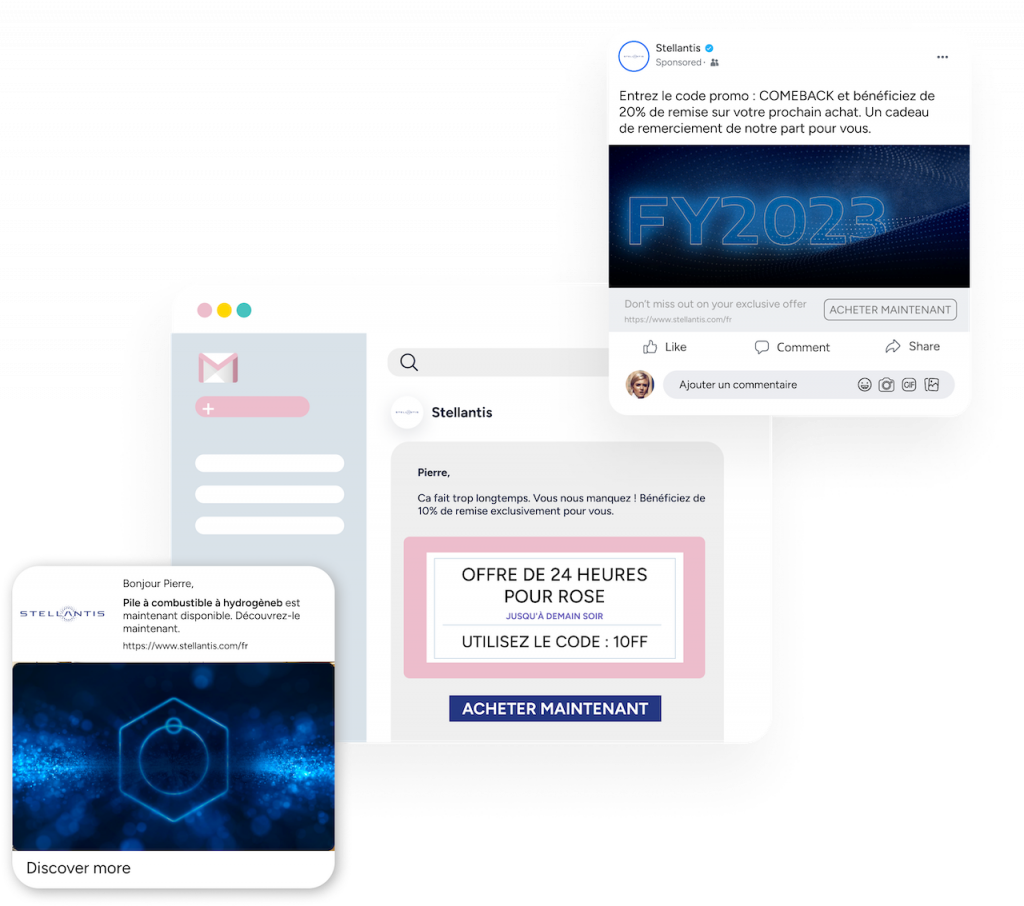 Créez des expériences multi-canal puissantes et personnalisées qui délivrent des messages pertinents, sur le canal préféré du client.