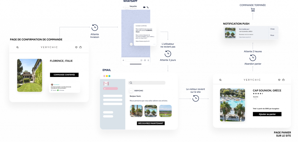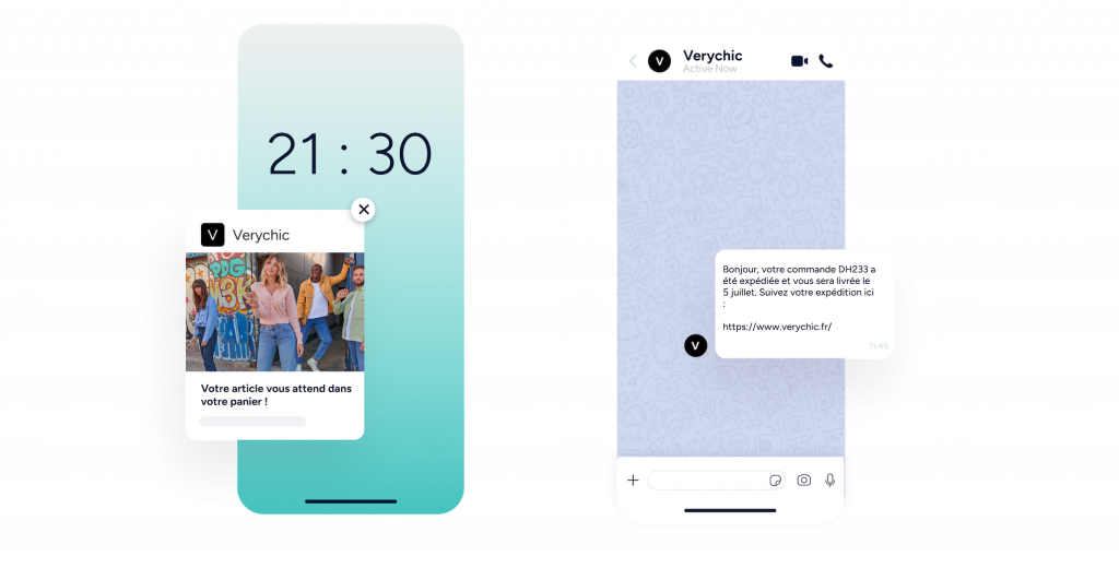 Utilisez les notifications Web Push, WhatsApp, les e-mails et les SMS.
