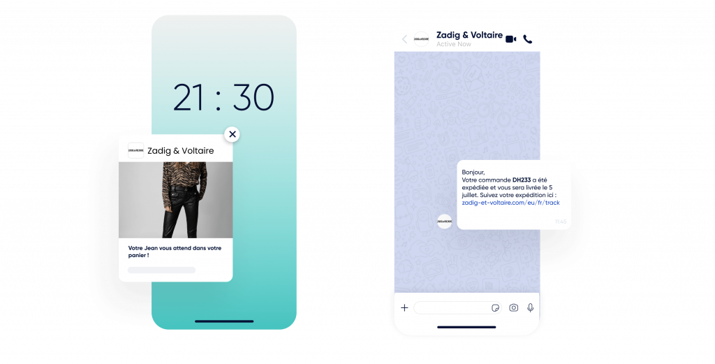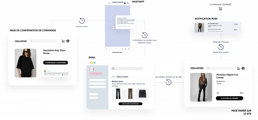 Utilisez les notifications Web Push, WhatsApp, les e-mails et les SMS.