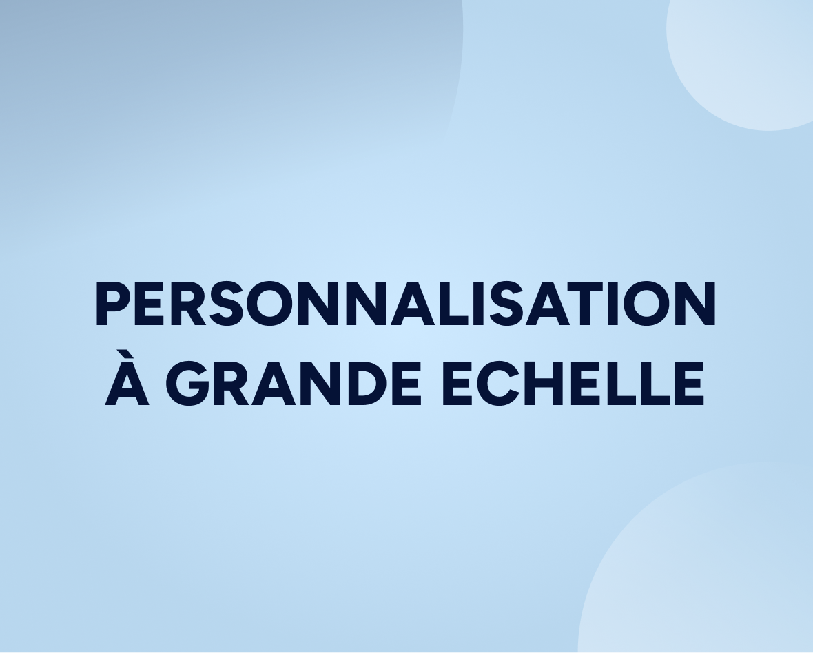 La personnalisation à grande échelle est le processus qui consiste à utiliser des données fiables – comme l’historique des achats, les actions onsite et les réponses aux enquêtes – pour fournir des expériences personnalisée à un grand nombre de clients sur différents canaux.
