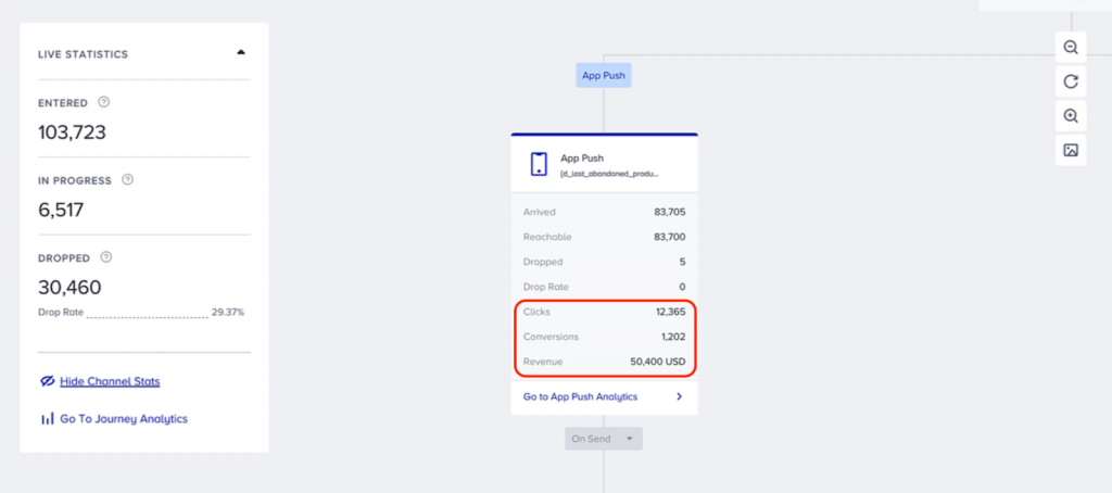 - Envoyer des messages contextuels aux clients sur leurs canaux préférés en utilisant divers déclencheurs et règles d’automatisation.
