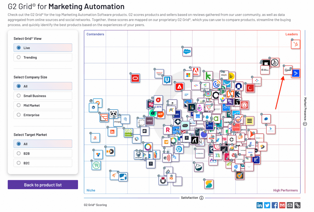 Pour vous aider à trouver la bonne solution pour votre entreprise, nous avons sélectionné les 13 meilleures plateformes de marketing automation et les avons organisées en trois catégories :