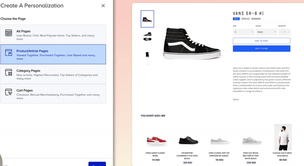Vous pouvez également choisir parmi un large éventail d’autres algorithmes de recommandation, tels que les articles les plus populaires, les articles les plus vendus, les articles consultés ensemble, les articles achetés ensemble, etc.