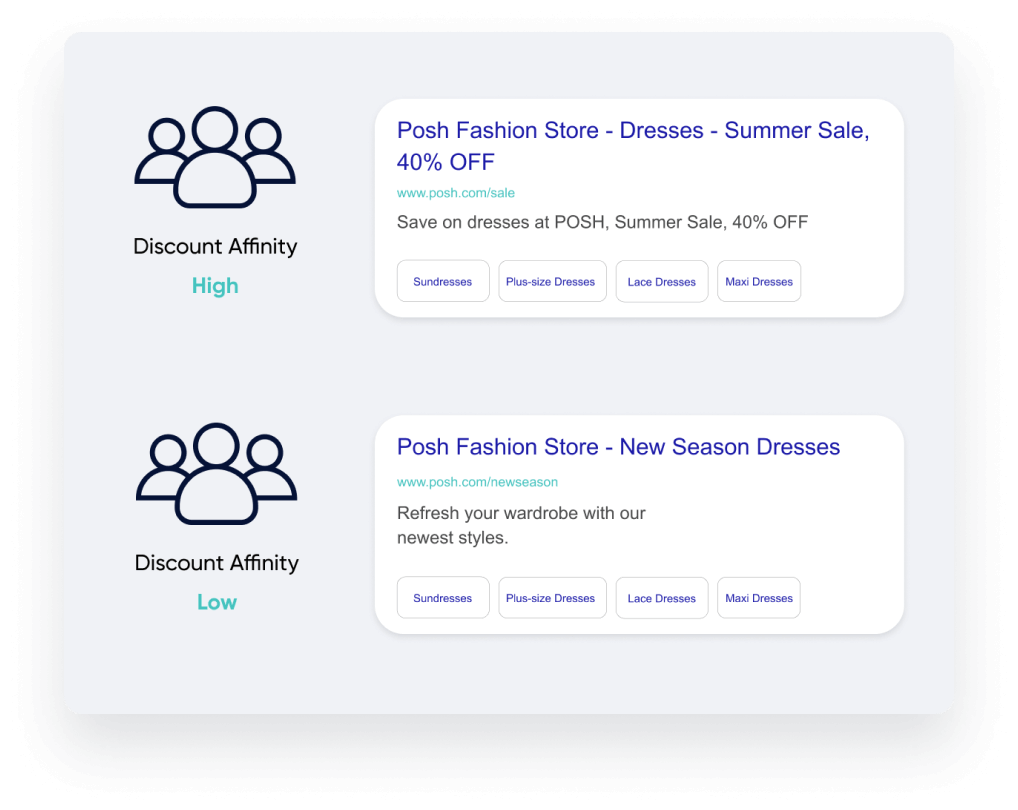 Notre algorithme prédictif apprend du comportement des utilisateurs et des clients et identifie les personnes les plus susceptibles d'effectuer un achat. Utilisez ce segment sur tous les canaux pour cibler les personnes les plus susceptibles d'acheter votre marque.