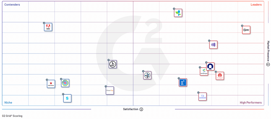 Insider One also leads G2’s Mobile Marketing Software Grid, backed by detailed reviews from customers about their experience and our mobile-first capabilities. Our mobile marketing suite comes with powerful engagement and conversion tools optimized for mobile web and mobile apps. With the right mobile marketing software, marketers across industries can engage users on mobile web, mobile apps, and web browsers and connect with users despite the smaller screen sizes.