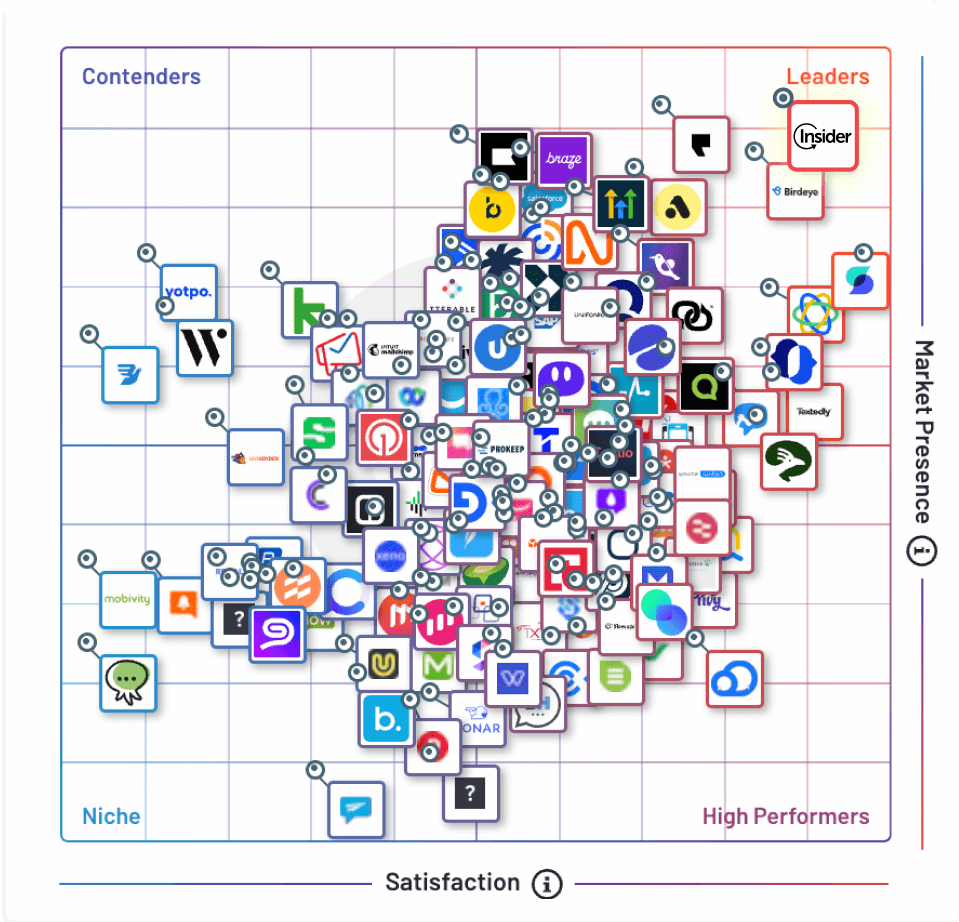 Deliver convenience, immediacy, and conversational experiences – at speed and scale. With the highest score in G2’s Mobile Marketing Report (99/100), Insider outperforms all other vendors. Keep reading to explore what makes Insider the #1 choice for mobile marketers.