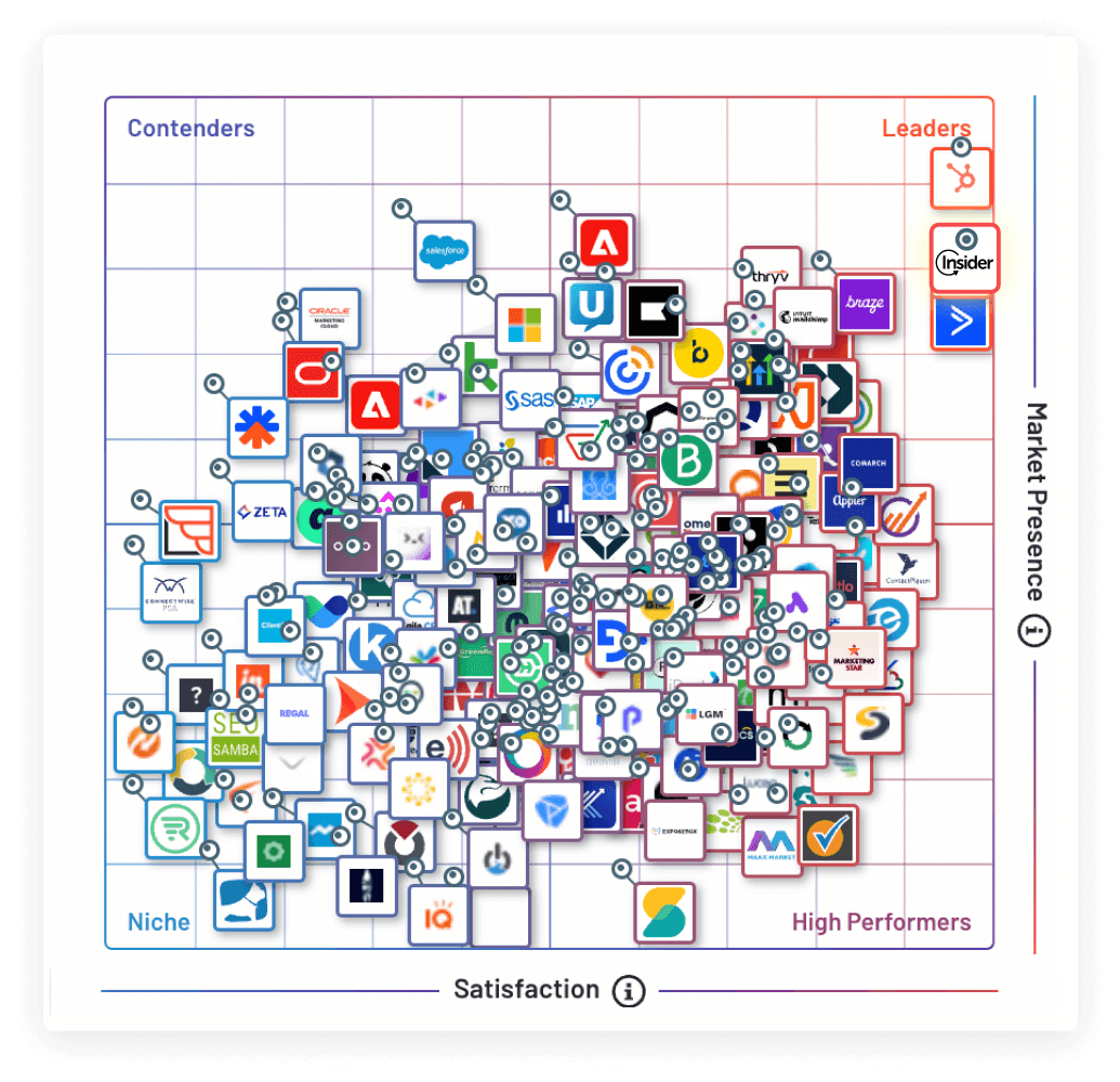 Insider scored 99/100 for its Integration capabilities—10% higher than the industry average. Sync customer, engagement, and product data across your entire tech stack with 100+ out-of-the-box integrations in 20+ categories, including CRM, data warehouses analytics, paid ads, social media, and more.