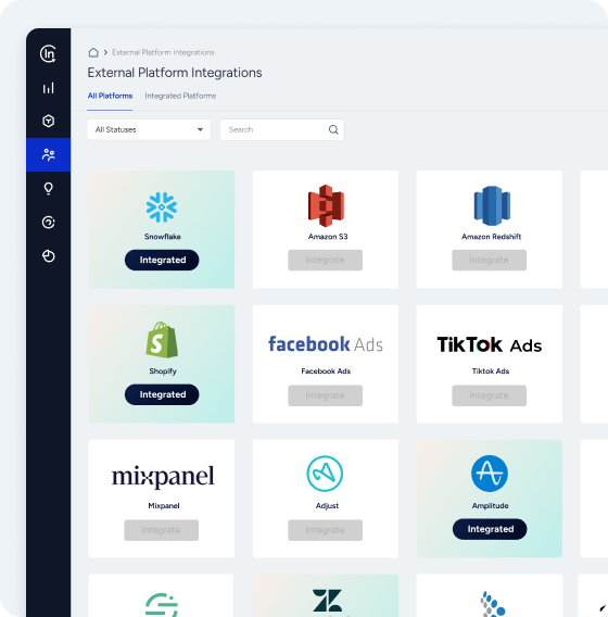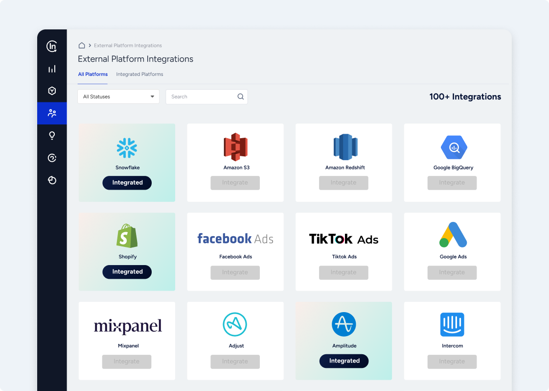 Insider scored 99/100 for its Integration capabilities—10% higher than the industry average. Sync customer, engagement, and product data across your entire tech stack with 100+ out-of-the-box integrations in 20+ categories, including CRM, data warehouses analytics, paid ads, social media, and more.