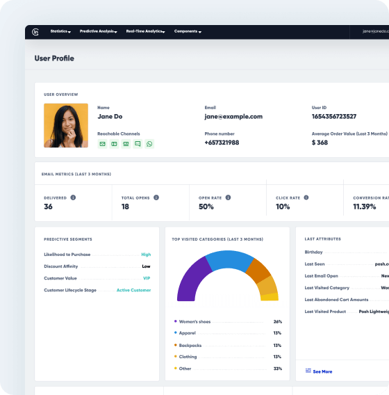 Measure campaign performance periodically across all channels from a single dashboard with Insider’s advanced analytics. Use these real-time insights to understand your customers better, empowering you to optimize campaigns for better results.